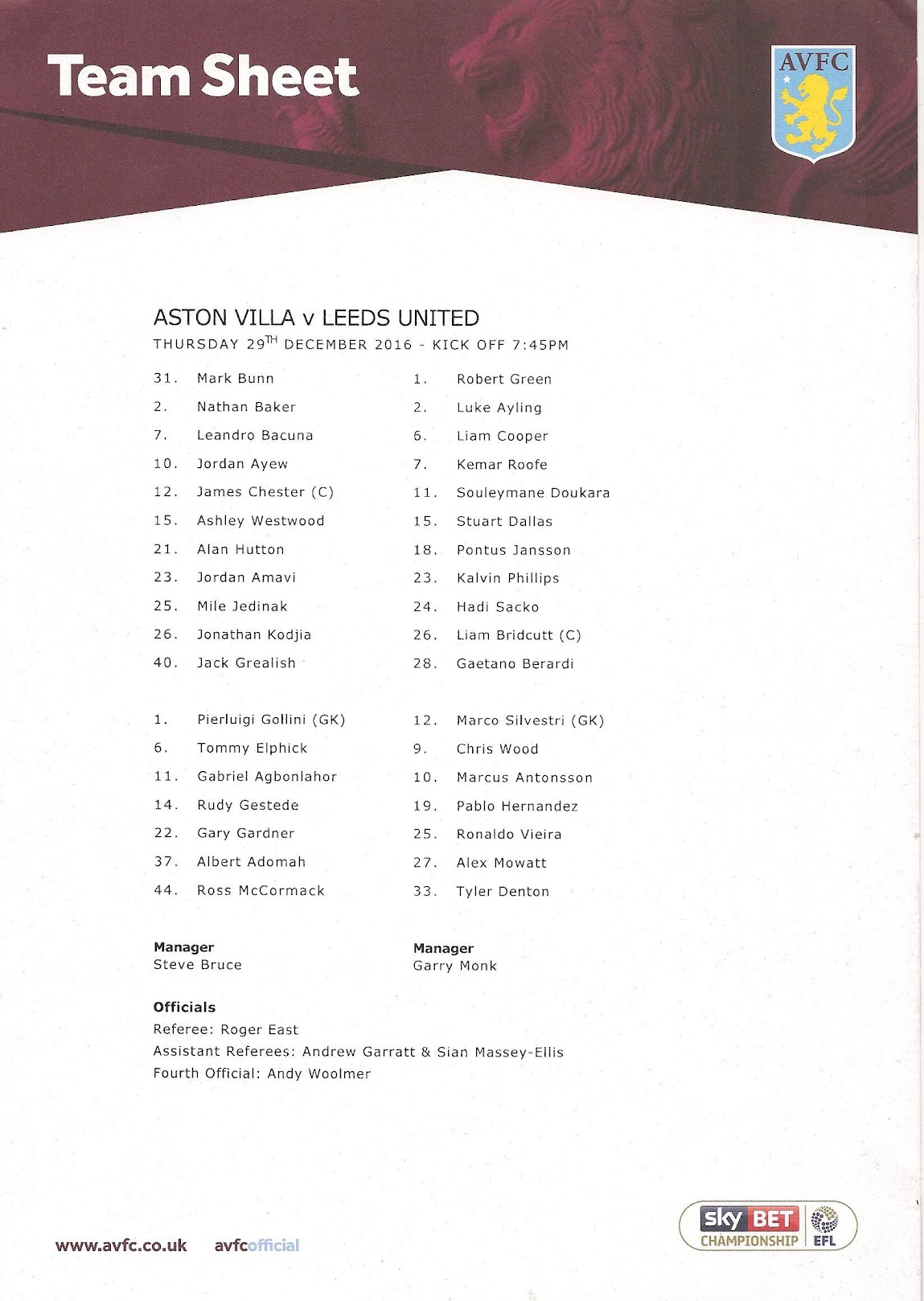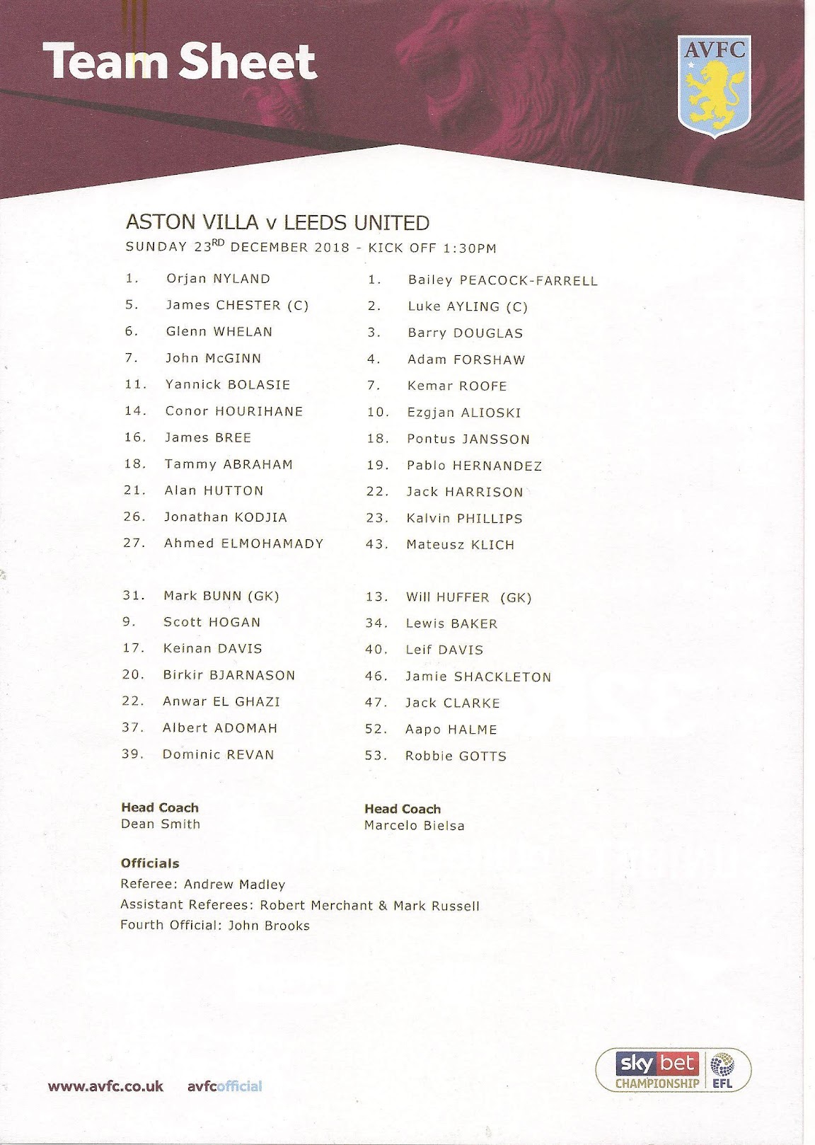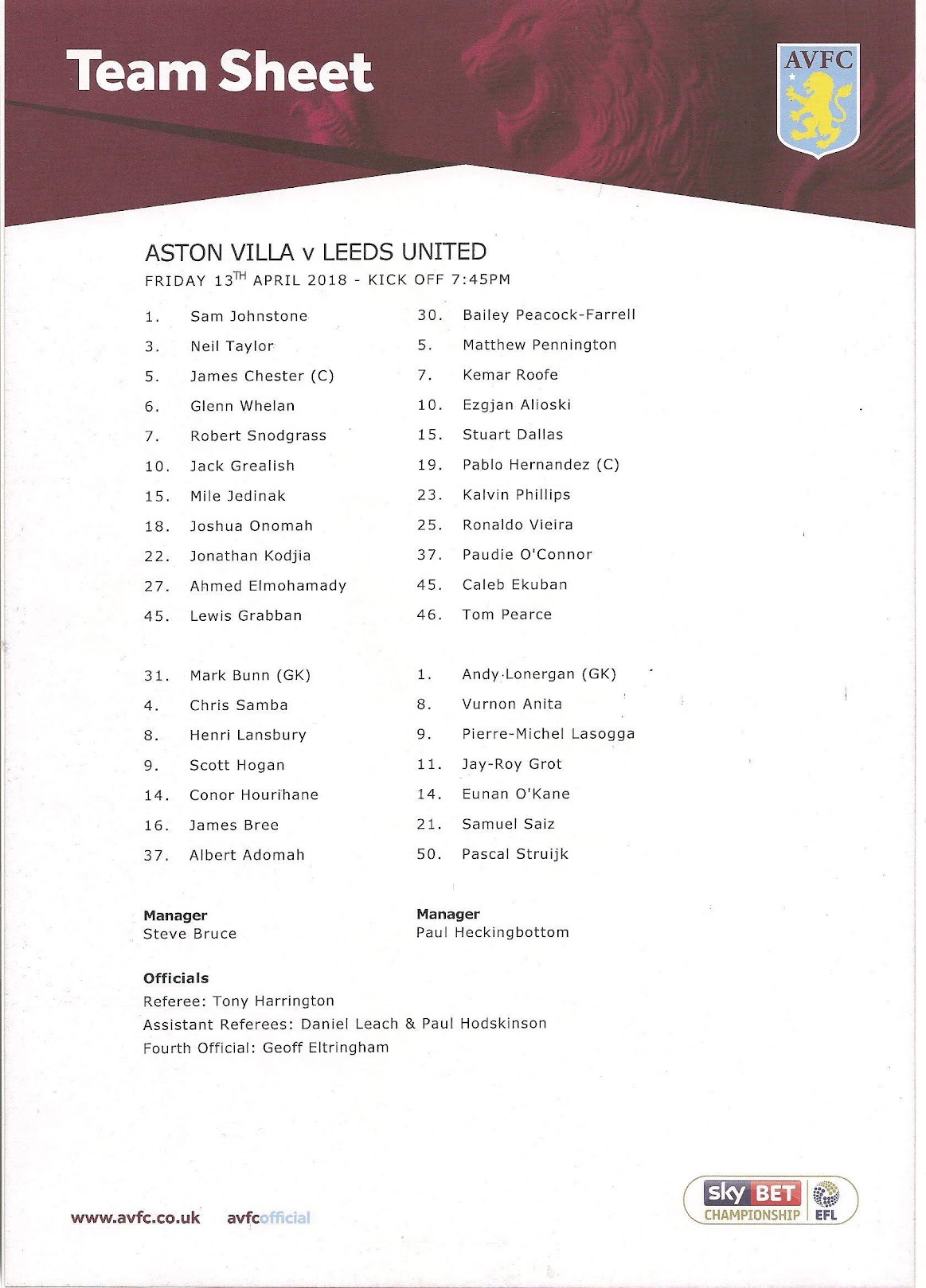 Programmes Head to Head - Aston Villa