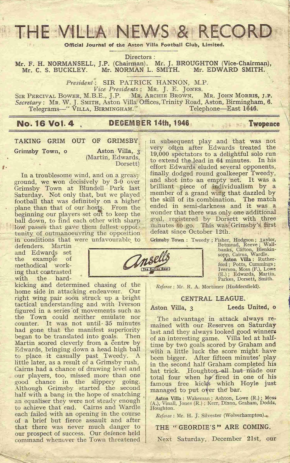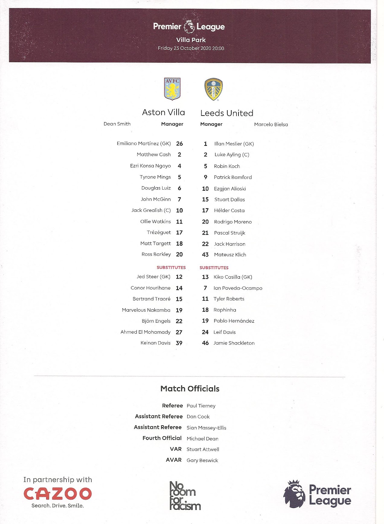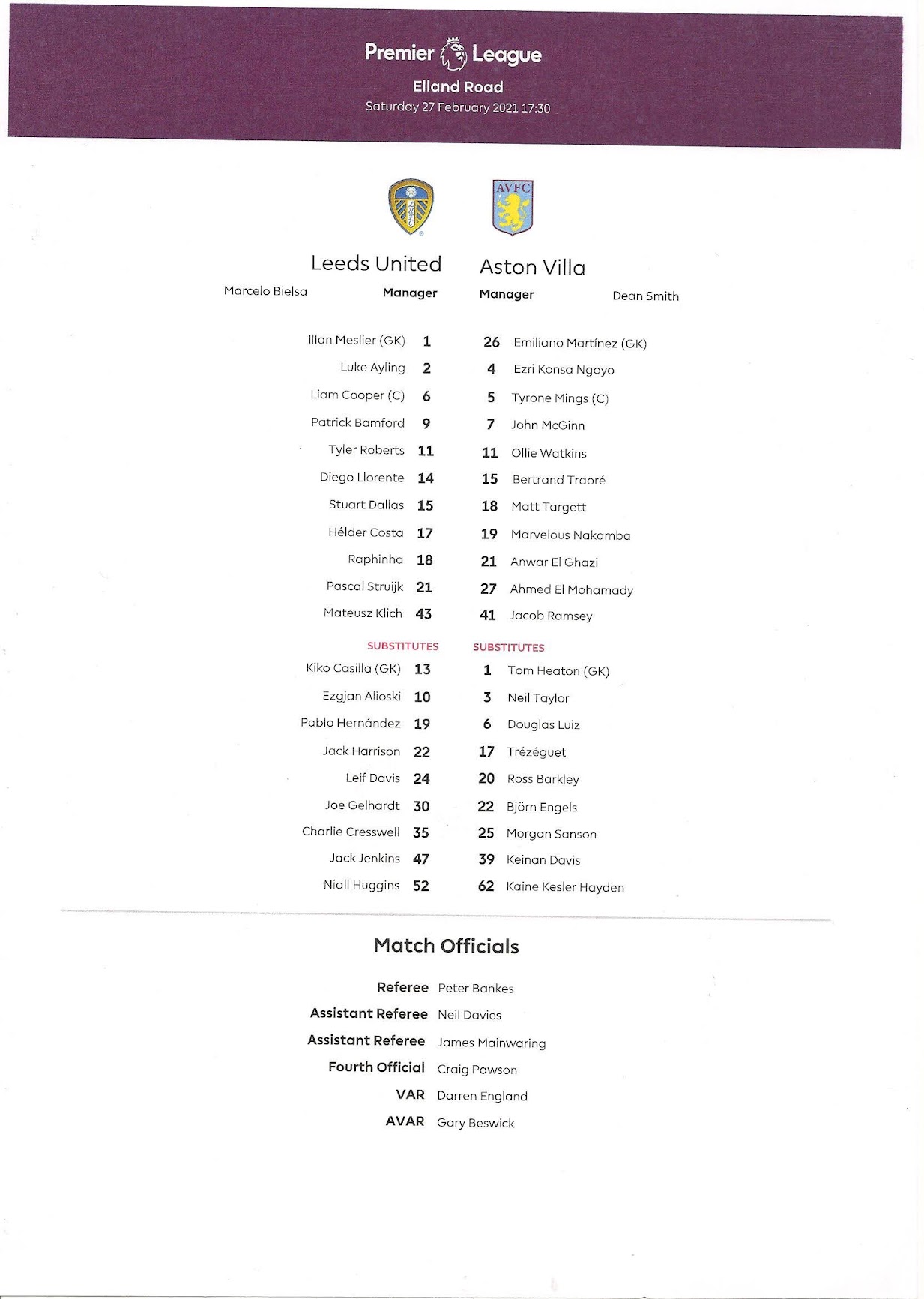 Programmes Head to Head - Aston Villa