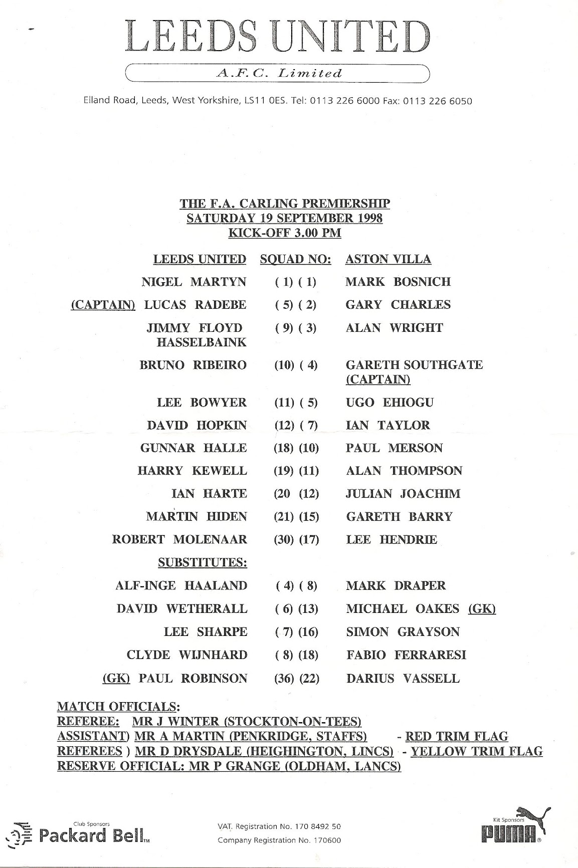 Leeds United Programmes - Head to Head