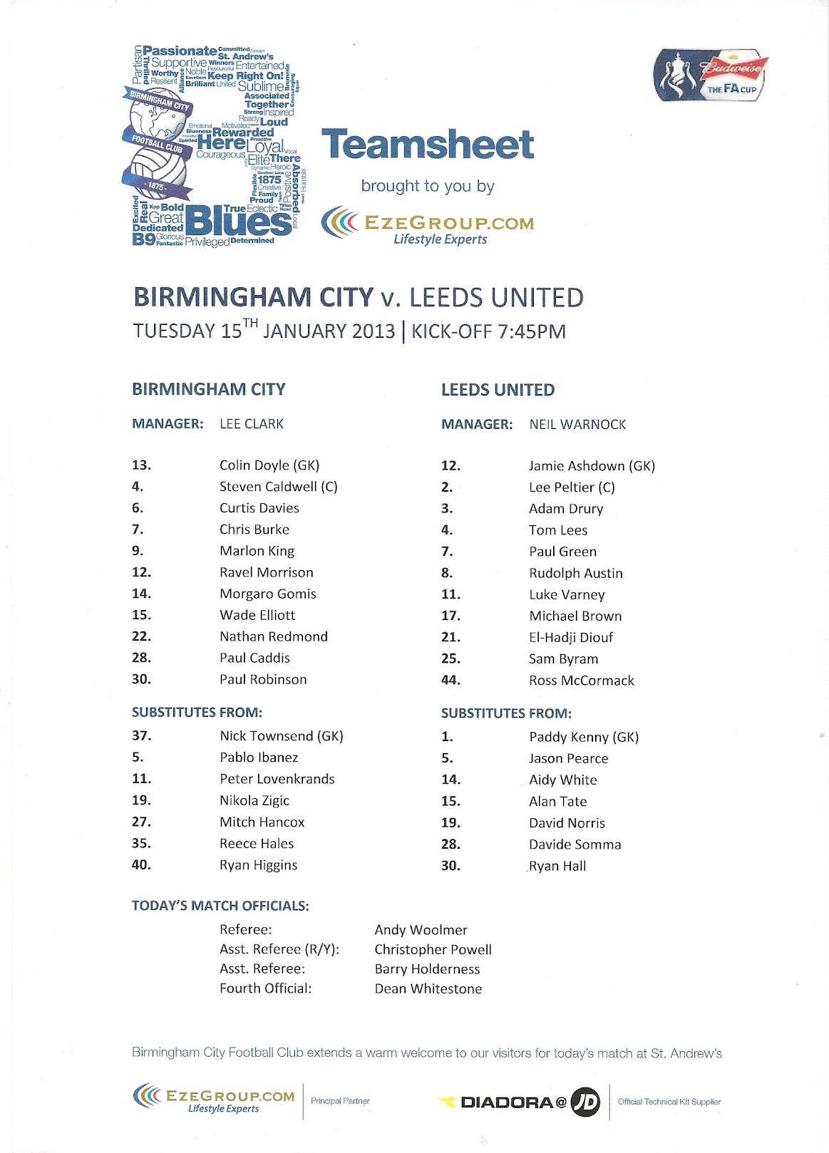 Programmes Head to Head - Birmingham City
