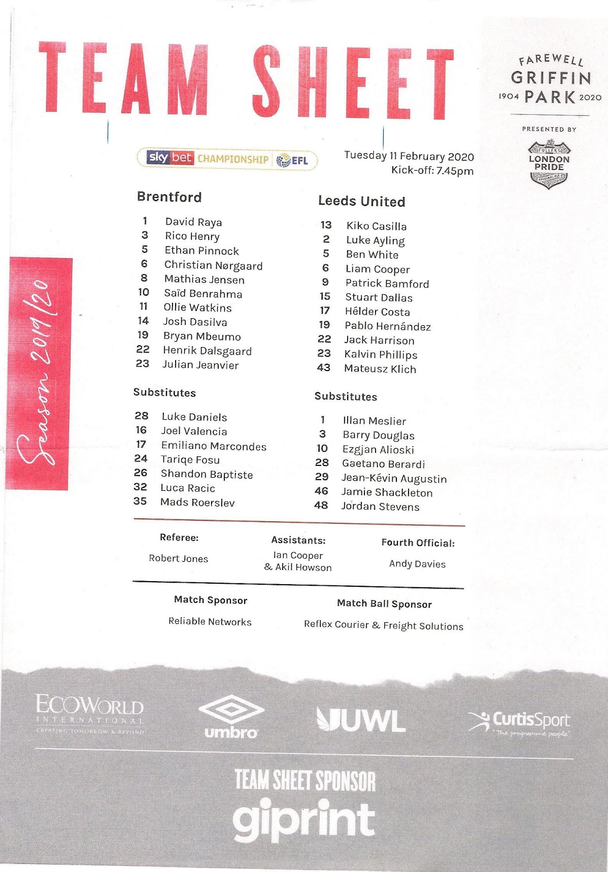 Programmes Head to Head - Brentford