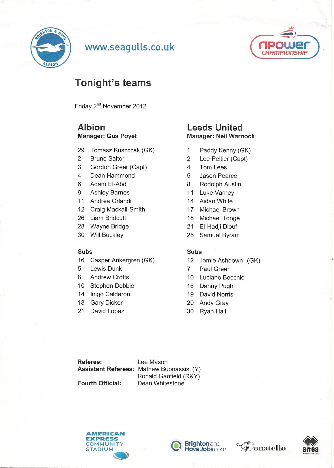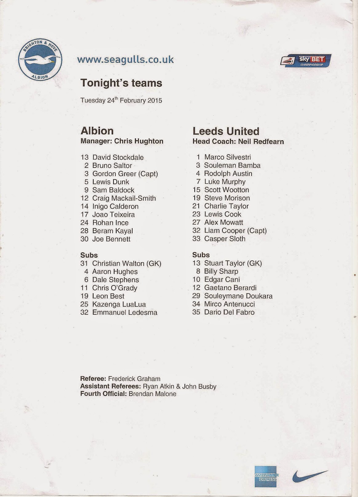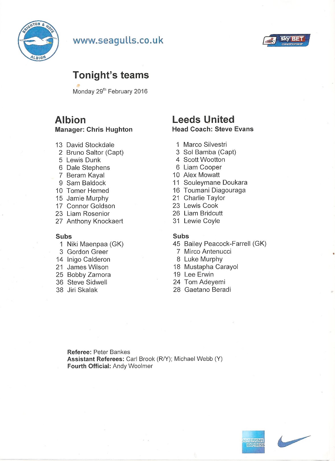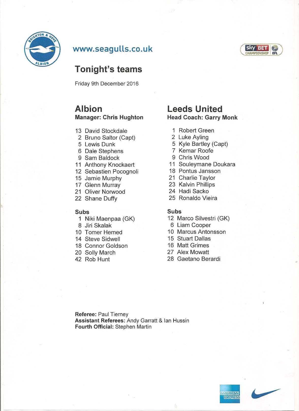 Programmes Head to Head - Brighton and Hove Albion