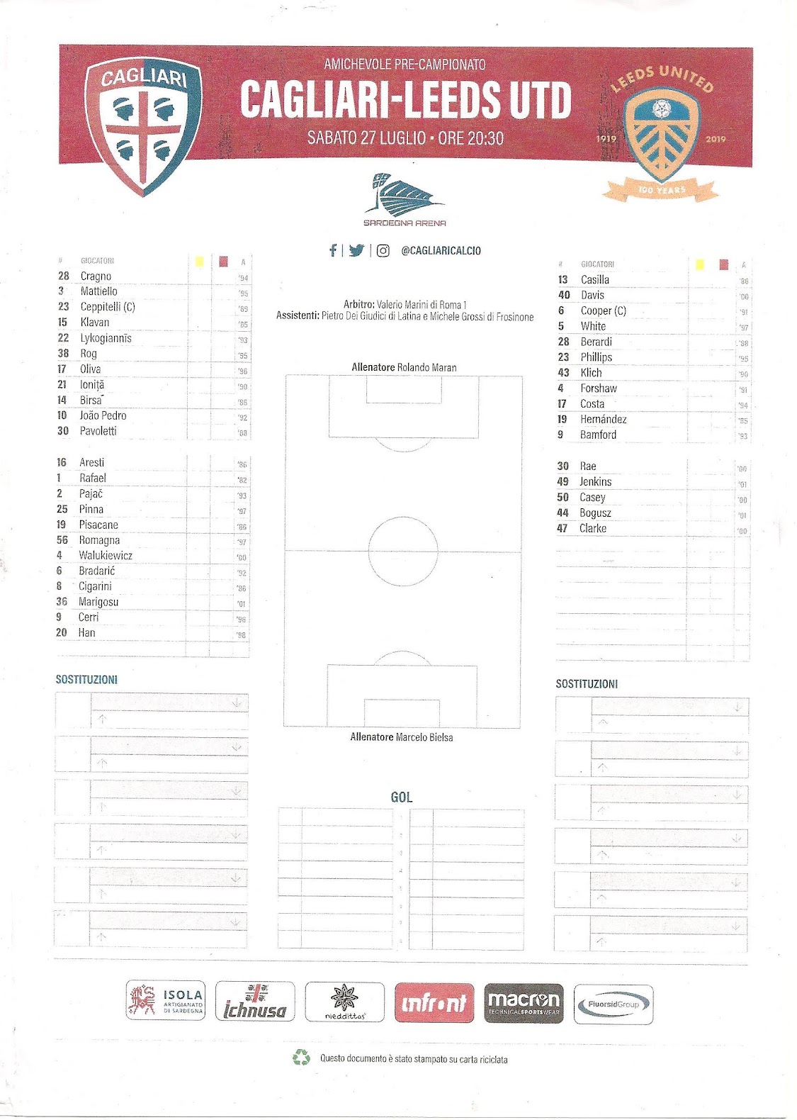 Programmes Head to Head - Cagliari