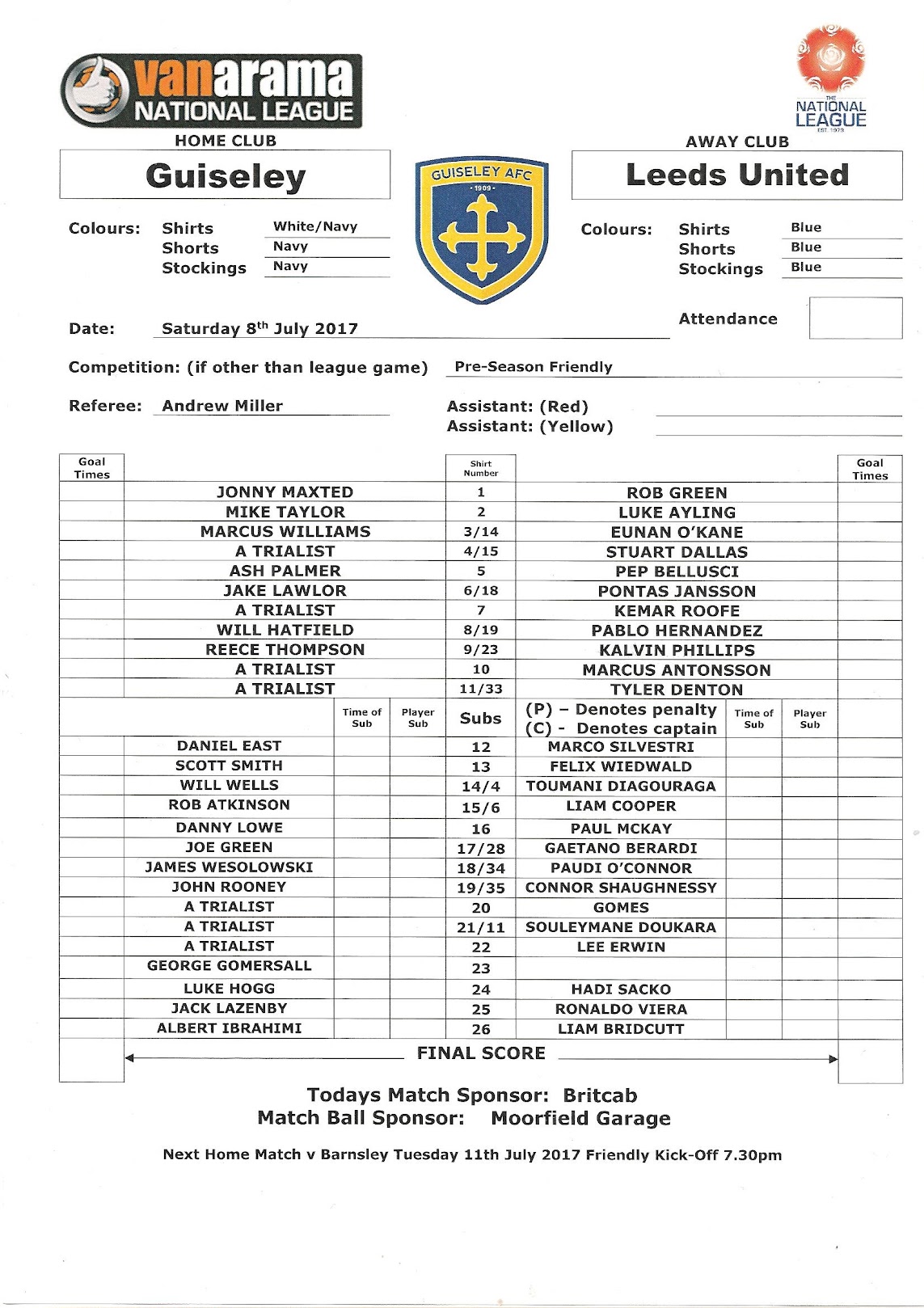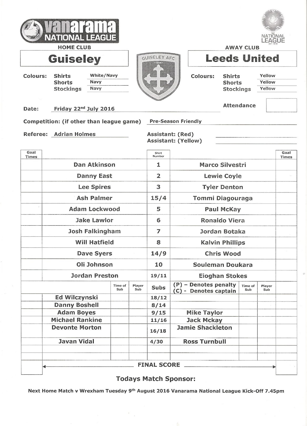 Programmes Head to Head - Guiseley