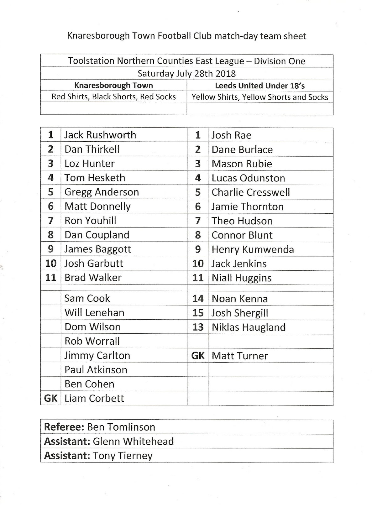 Programmes Head to Head - Knaresborough Town