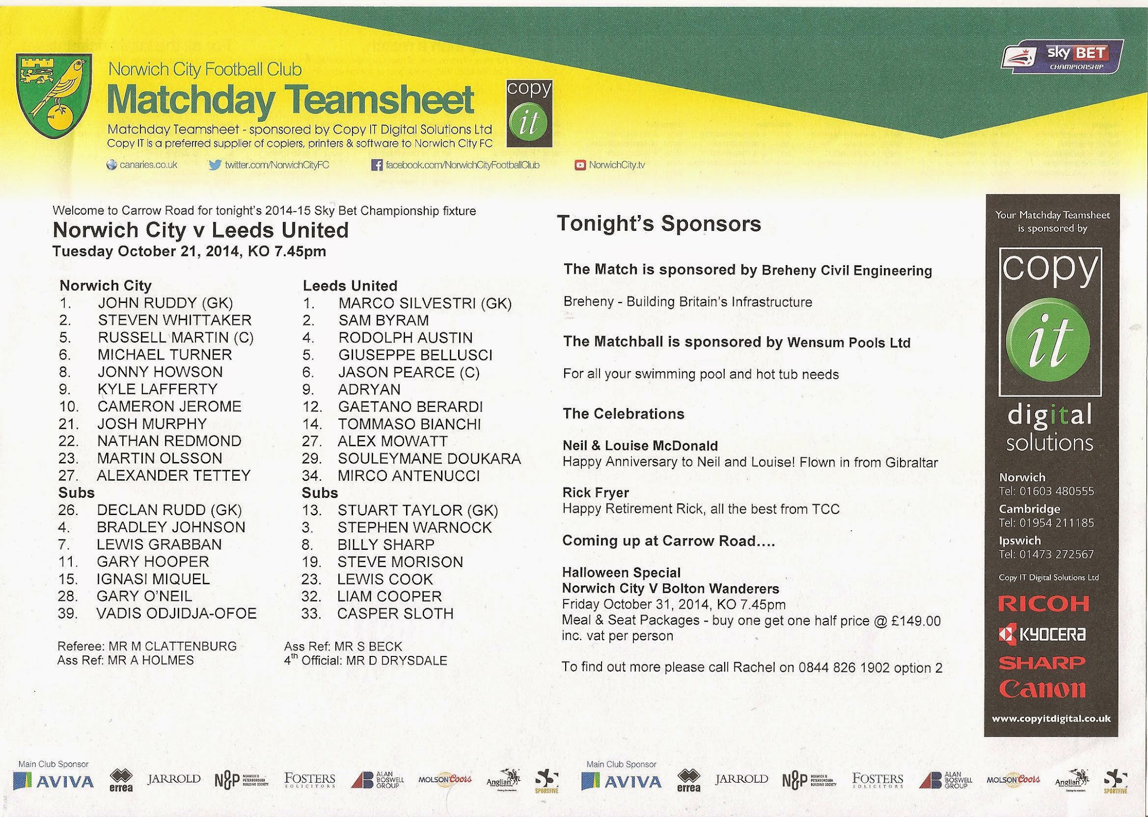 Programmes Head to Head - Norwich City