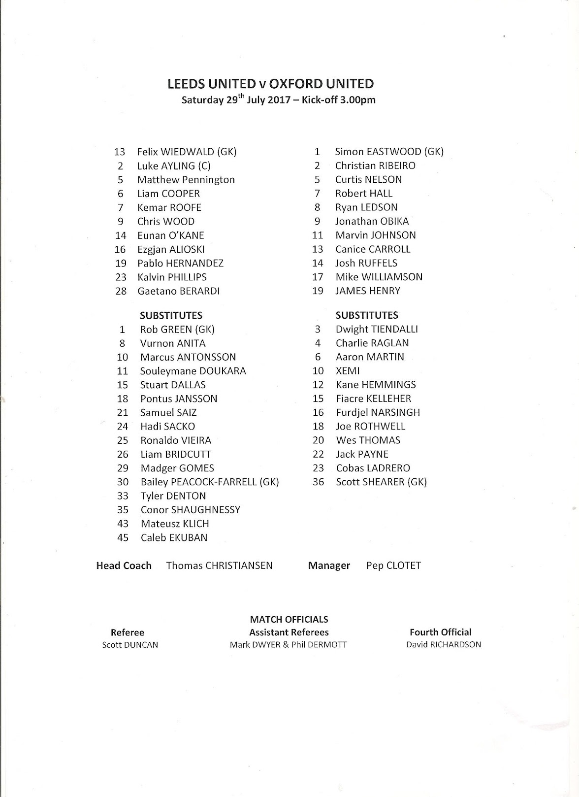 Programmes Head to Head - Oxford United