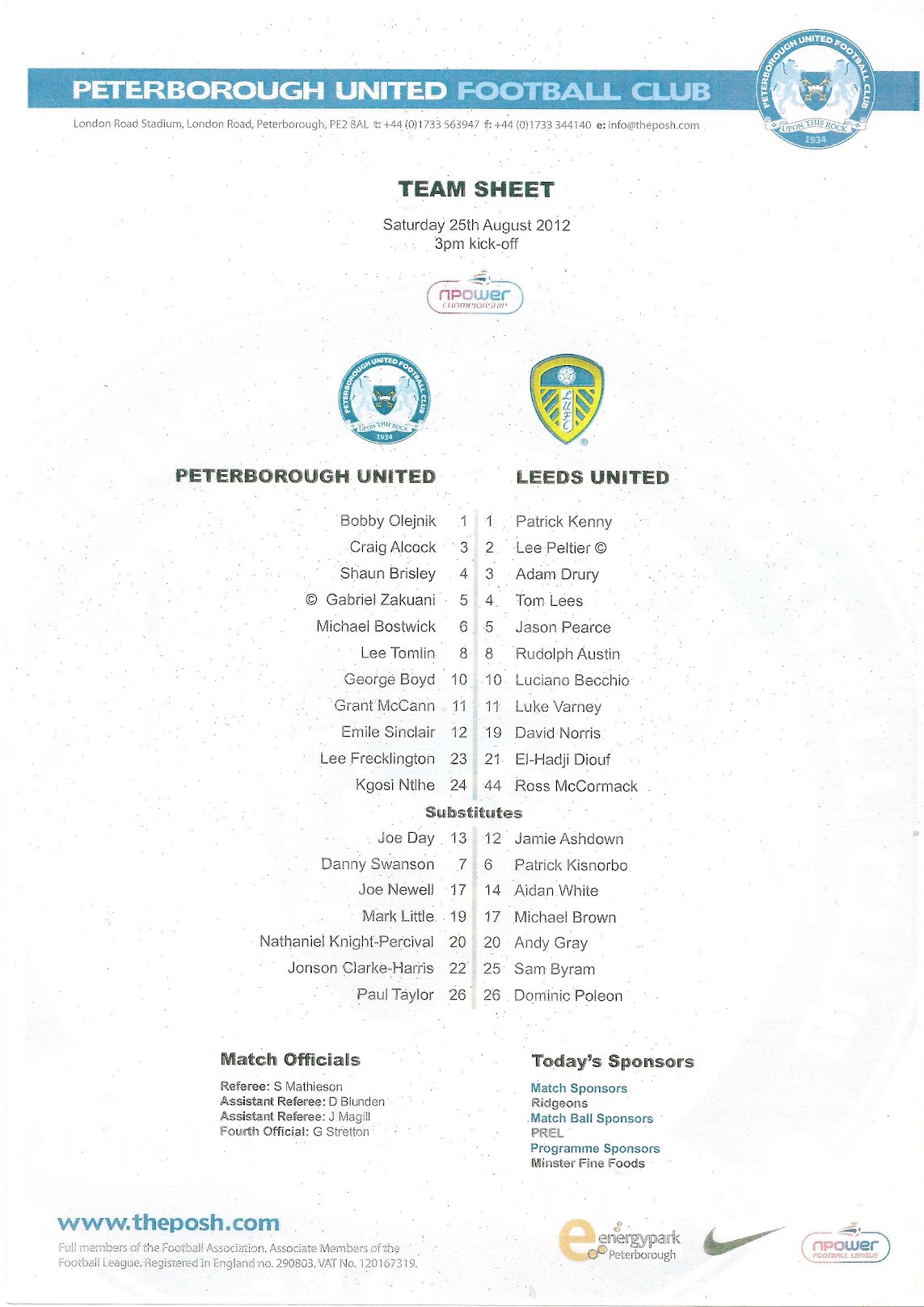 Programmes Head to Head - Peterborough United