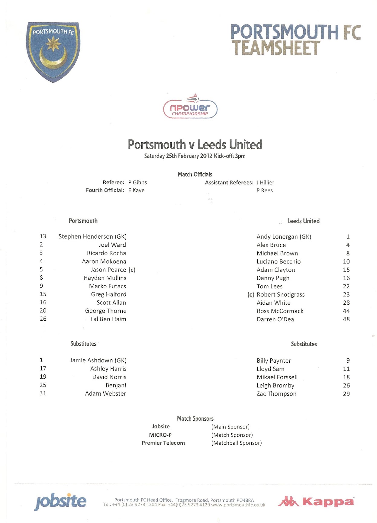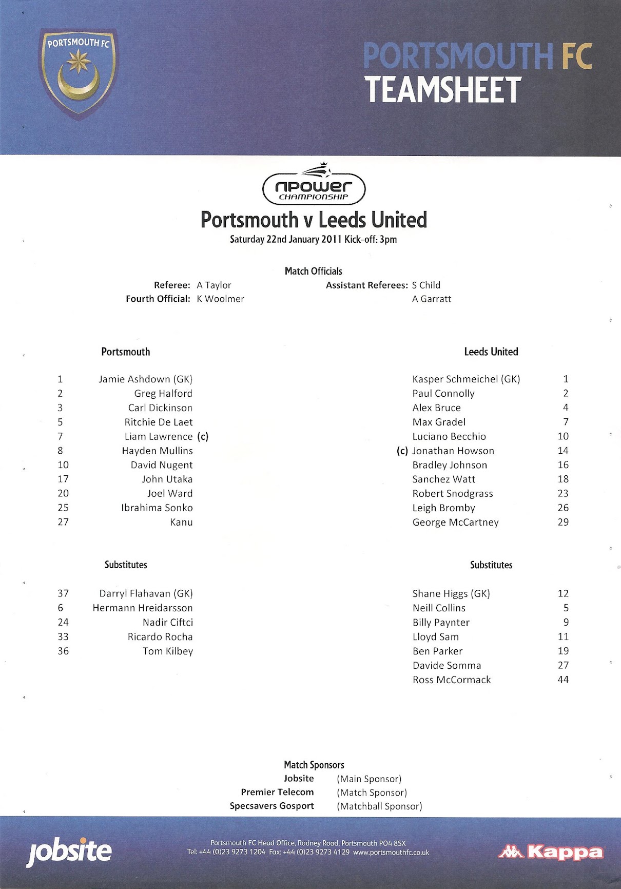 Programmes Head to Head - Portsmouth