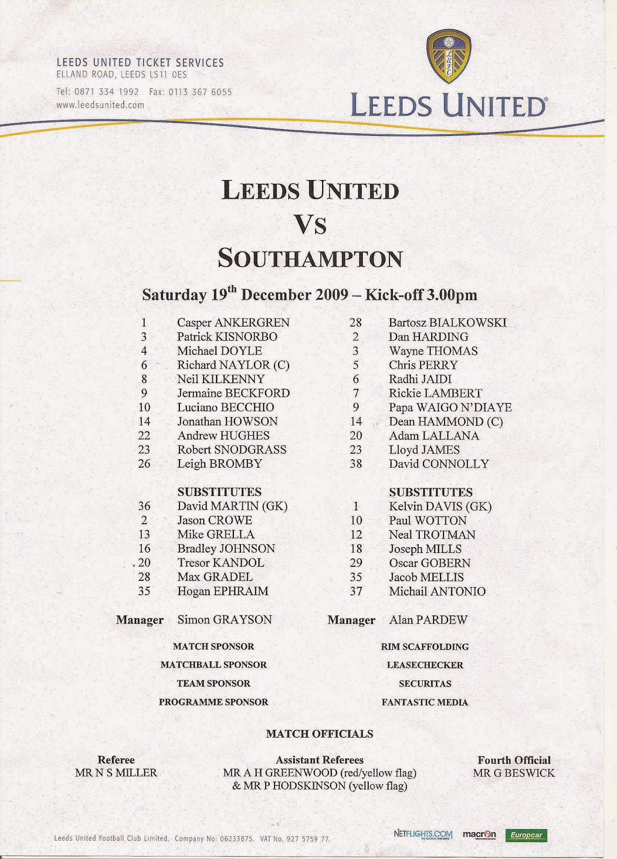 Leeds United Programme Guide