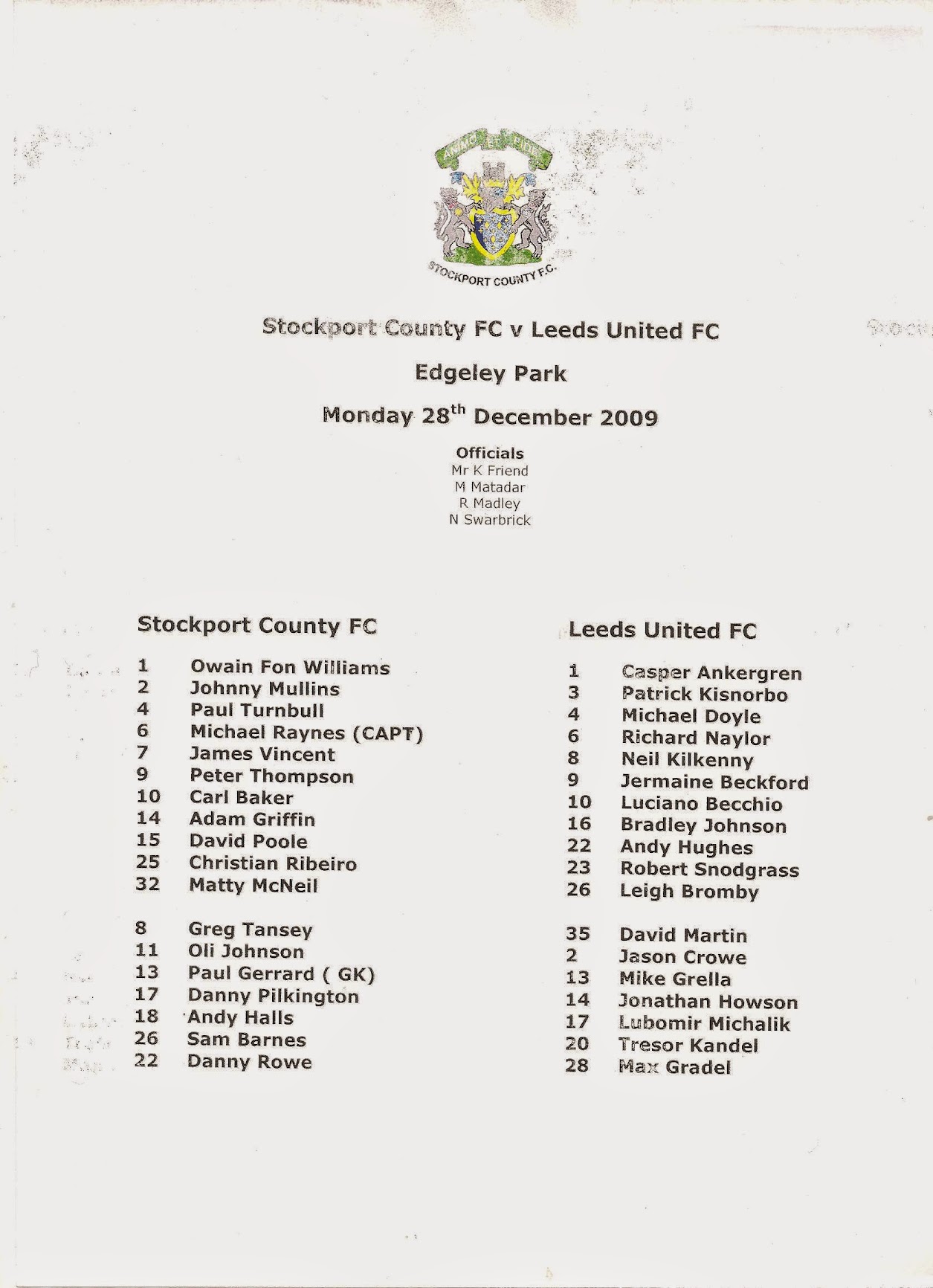 Programmes Head to Head - Stockport County