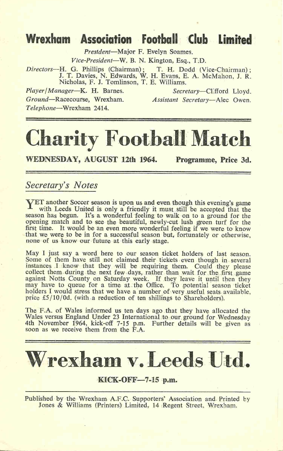 Programmes Head to Head - Wrexham