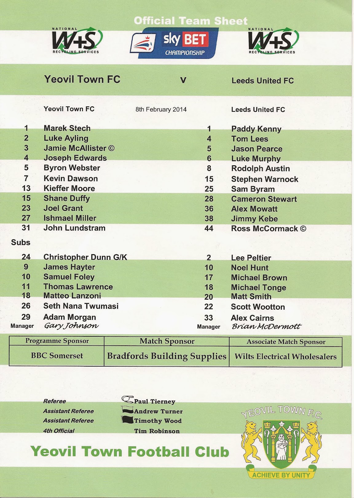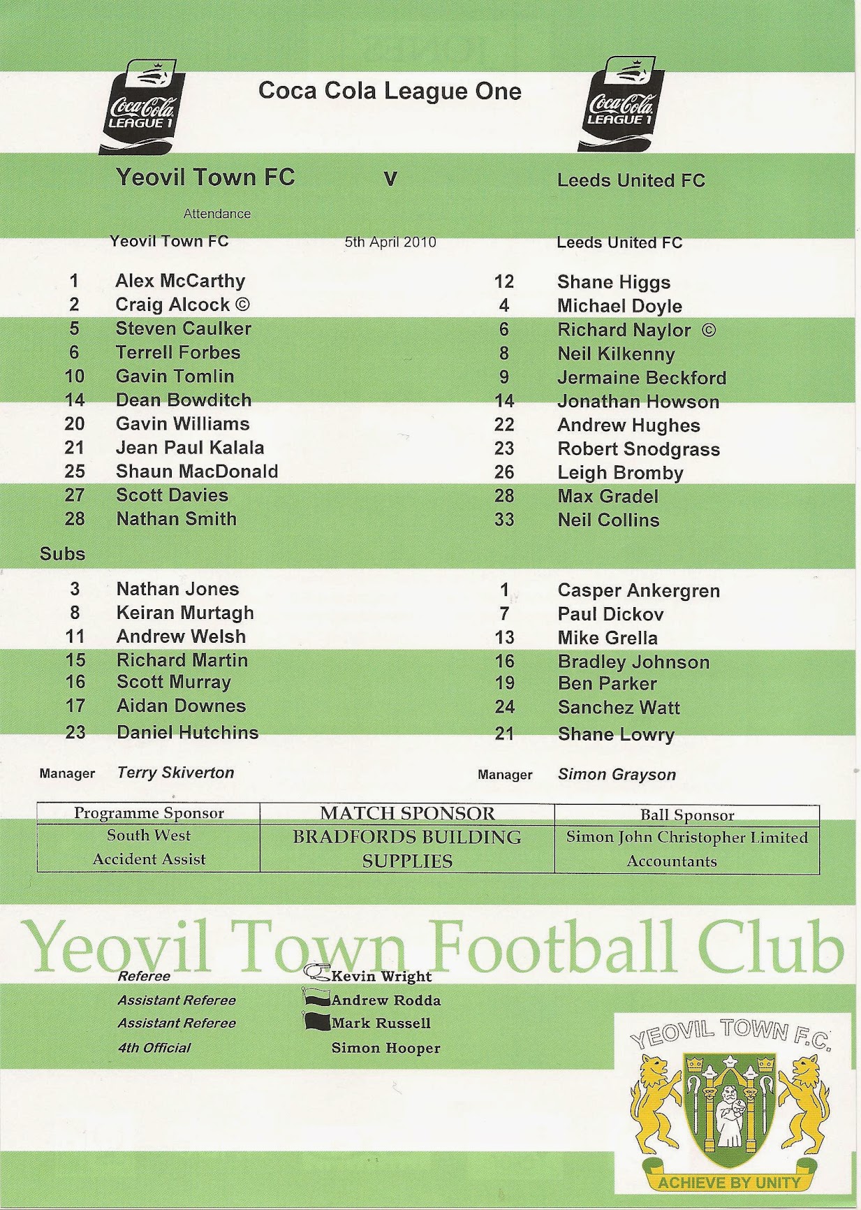 Programmes Head to Head - Yeovil Town